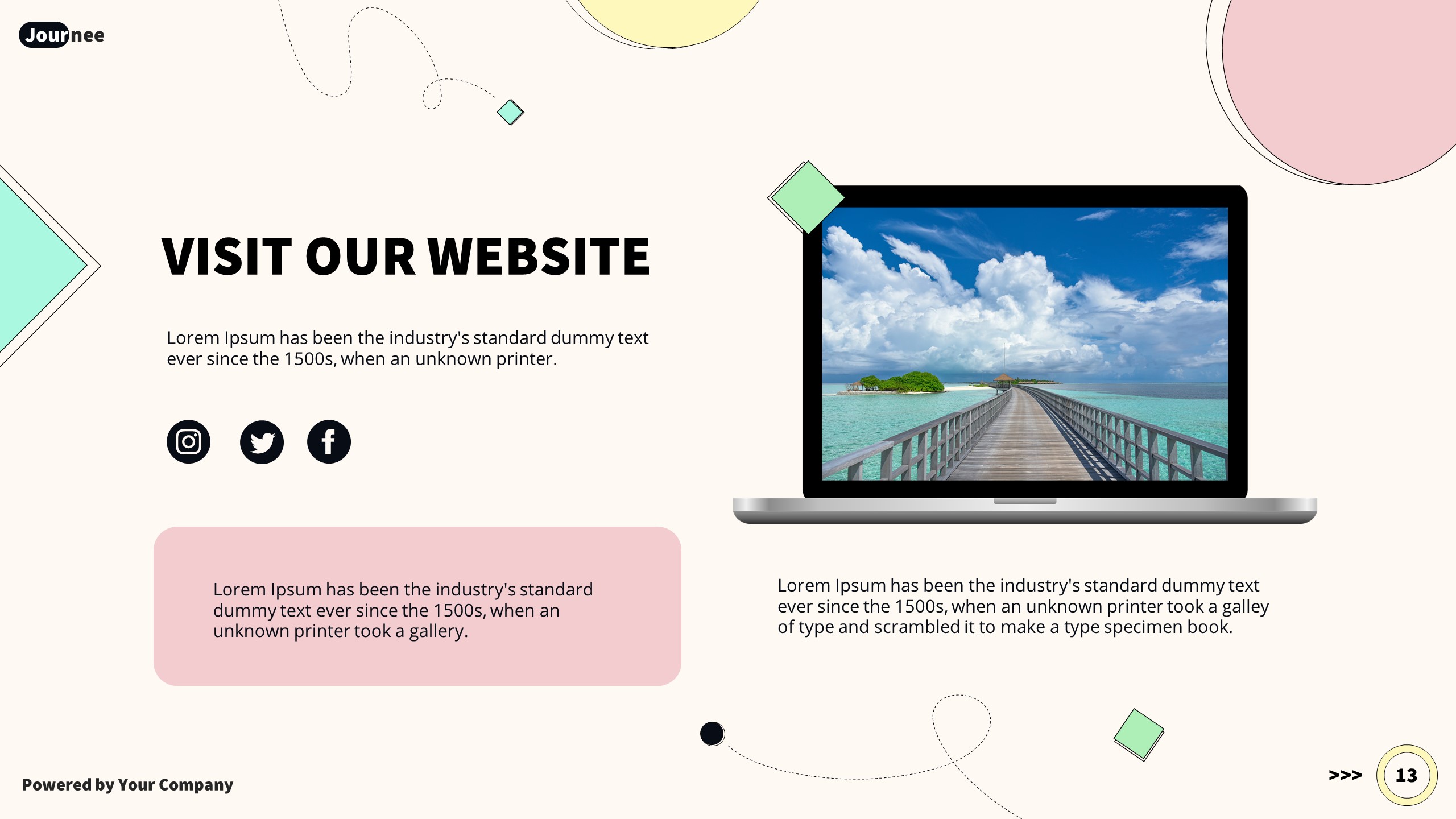 Journee offer you convenience in terms of replacing images and fonts. Make your clients feel satisfied with Journee presentation template.