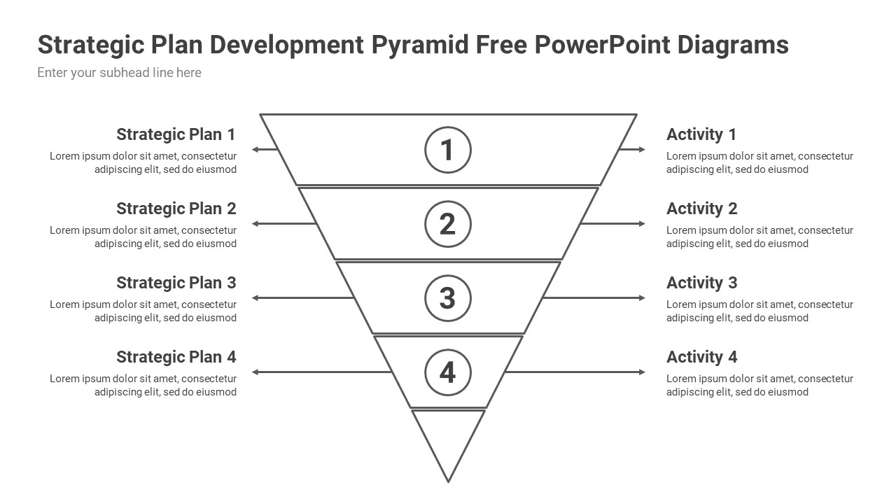 Strategic Plan Development Pyramid Free PowerPoint Diagrams design to convert your data visually into an amazing presentation. With fully editable slides, infographics, and diagrams.